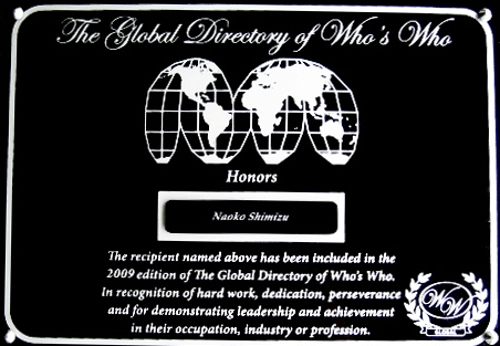 4年連続で Global Directory of Who’s Who(全世界の現代重要人名録)に選ばれ栄誉を授与される ()