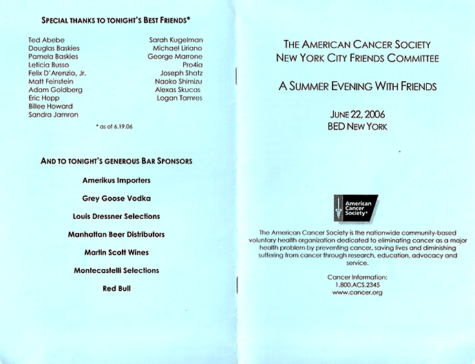 さくらライフセイブ代表American Cancer SocietyよりNew Yorkの夏の夜の集いに招待 (2006年6月22日) Best friends(もっともサポートをした人々)の一人に選ばれる