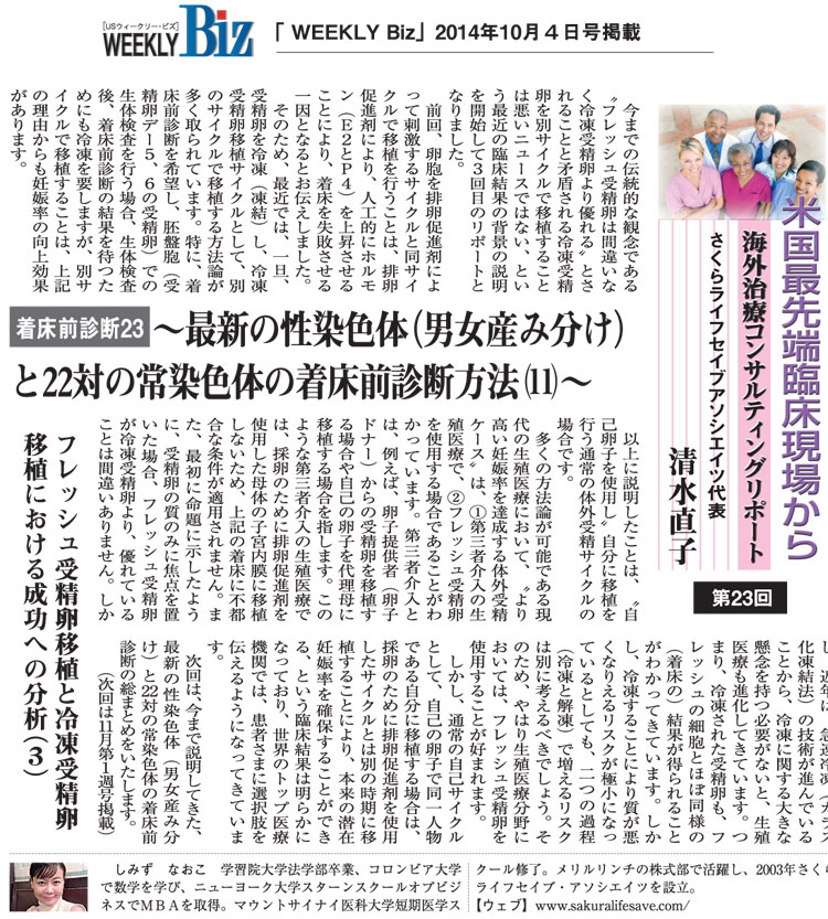 米国最先端臨床現場から 最新医療レポート<着床前診断23>