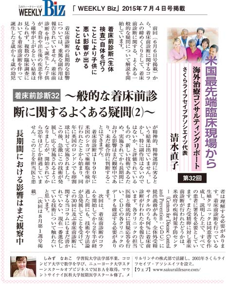 米国最先端臨床現場から 最新医療レポート<着床前診断32>